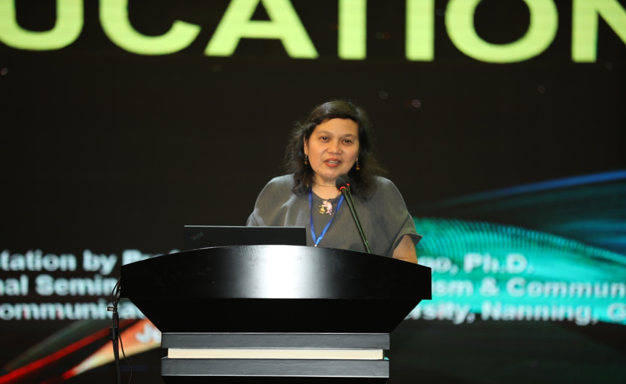 菲律宾大学大众传播学院经理 Arminda Vallejo Santiago(阿曼达·瓦莱乔·圣地亚哥)在简要介绍了菲律宾媒体发展的历史后,着重探讨了第四次工业革命和数字时代下技术的快速发展,如何给菲律宾新闻教育带来挑战。