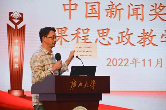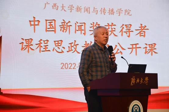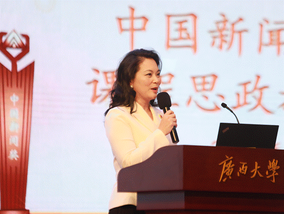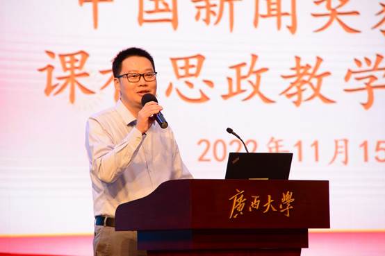 1115日,公司邀请获得32届中国新闻奖广西4件获奖作品的主创者到学院举行课程思政教学公开课。教学公开课在学院融媒体中心进行,学院领导、全体专任教师、研究生和本科生代表近百名师生参加听课。活动由播音与主持艺术系主任宋存杰老师主持。