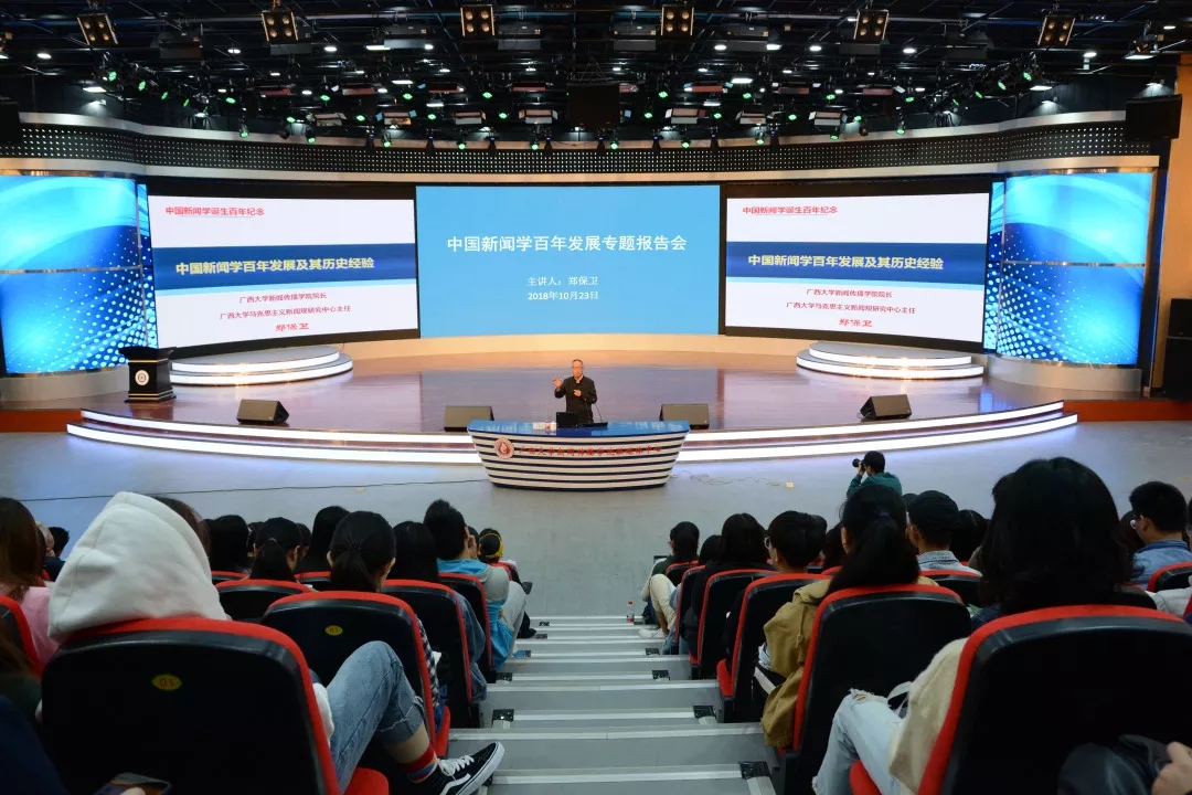 10月23日下午3时,beet365beet365经理郑保卫教授在学院融媒体中心作中国新闻学百年发展专题报告会。学院全体老师、部分本科生及研究生到场聆听了报告。
